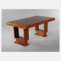 wohl Frankreich 1930er Jahre, im indischen Palisander furniert, rechteckige Platte mit profilierter Zarge, getragen von zwei u-förmigen Füßen mit gewelltem Stand, Maße 75 x 162 x 90 cm.