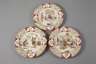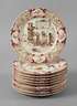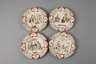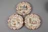 Ende 19. Jh., schwarze Stempelmarken, Modell 2235P, Steingut farbig bedruckt, verschiedene figürliche Darstellungen, die Fahnen gerippt mit rocaillenverzierten Kartuschen, Gebrauchsspuren, D je 22 cm.