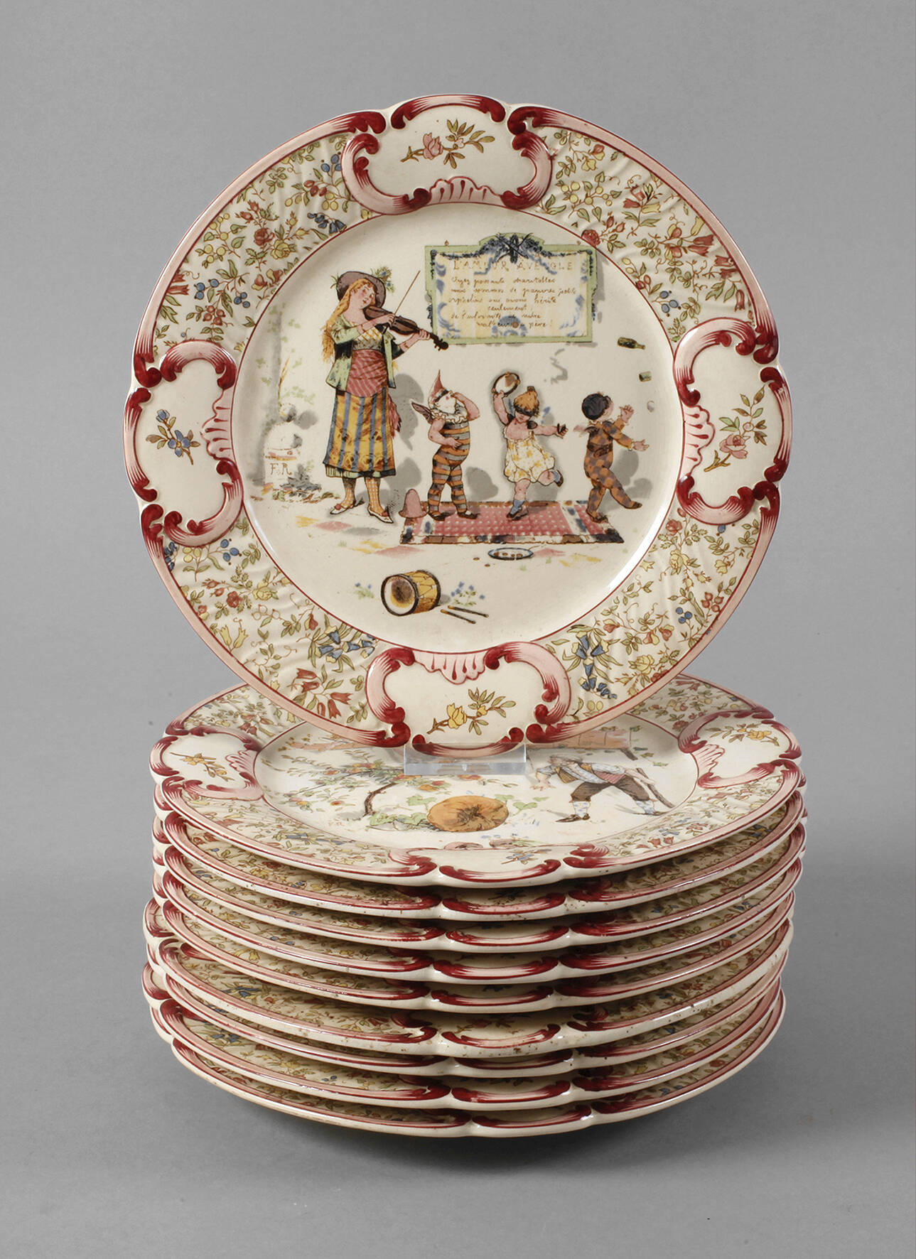 Sarreguemines zehn Teller mit Figuren