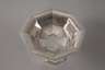 gestempelter Anker für Birmingham mit Jahresbuchstabe m für 1911, Lion Passant und undeutliche Herstellermarke, facettierter Fuß und weite Schale, im Fuß handschriftliche geritzte Zeichen und eine minimalste Delle, sonst sehr schöner gepflegter Zustand, H 14,5 cm, D 21 cm, G ca. 374 g.