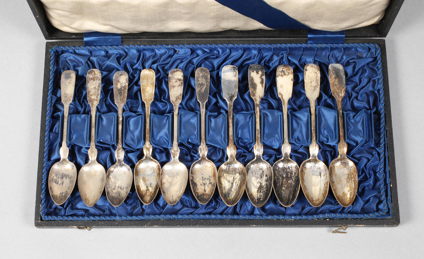 1. und 2. Hälfte 19. Jh., verschiedene Hersteller und Monogramme, gestempelt 10 Lot und 800, reinigungsbedürftig, mit leichten Gebrauchsspuren, G zusammen ca. 112 g.