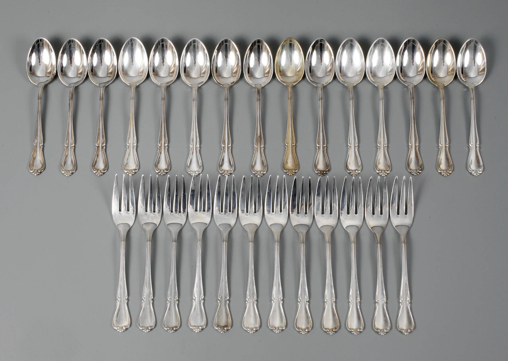 Silber 15 Kaffeelöffel und zwölf Kuchengabeln