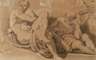 zwei teils nackte Männer, neben einer Säule lagernd, Tuschefeder, teils laviert, 18. Jh., auf Passepartout Pappschild und hierauf bezeichnet „Carle van Loo 1705–1765 Ec. Fr.“, Erhaltungsmängel, unter Passepartout und hinter Glas gerahmt, Passepartoutausschnitt ca. 14,3 x 22,3 cm. Künstlerinfo: eigentlich Charles André van Loo, genannt Carle van Loo oder Carle Vanloo, frz. Maler (1705 Nizza bis 1765 Paris), Sohn des Louis Abraham van Loo und Bruder des Jean-Baptiste van Loo, 1712–15 und 1716–18 mit seinem Bruder Italienreise, Studium der Bildhauerei bei Pierre Legros, ab 1720 in Paris und Assistent seines Bruders, 1728 Romaufenthalt, 1732 in Turin Tätigkeit für König Karl Emanuel III. von Sardinien, 1733 Rückkehr nach Paris, ab 1735 Mitglied der Königlichen Kunstakademie, 1737 Ernennung zum Professor, 1734 Anfertigung einiger Gemälde für die Kapelle Saint-Marcel der Kathedrale von Notre Dame, Unterstützung durch Madame de Pompadour, 1750 in den Adelsstand erhoben, 1763 Wahl zum Direktor der Akademie, Quelle: Thieme-Becker und Wikipedia.