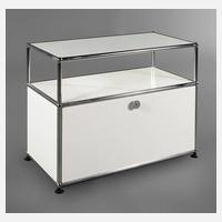 1990er Jahre, Stahlrohr verchromt und Stahlblech weiß lackiert, modulares Baukastensystem, Unterteil mit klappbarer Tür, guter Zustand, Maße 59 x 78 x 37 cm.
