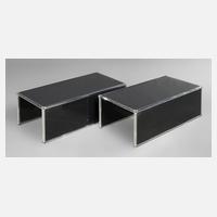 1980er Jahre, Stahlrohr verchromt, Stahlblech schwarz lackiert, offene Hängeregale, je 37 x 77 x 27 cm.