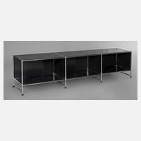 1980er Jahre, Stahlrohr verchromt und schwarz lackiertes Stahlblech, Baukastensystem, geringe Gebrauchsspuren, Maße 50 x 225 x 37 cm.