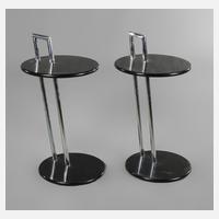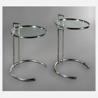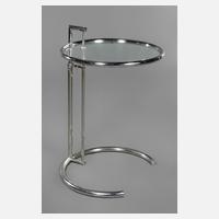 ungemarkt, nach einem Entwurf von Eileen Grey 1927, wohl Italien, 1980er Jahre, Stahlrohr verchromt, runder höhenverstellbarer Tisch mit eingelegter Glasplatte, D 51 cm.