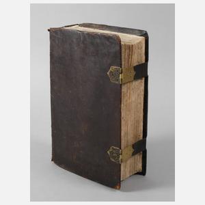 Altes Testament [ohne Titel], Die Propheten, Apocrypha, Das New Testament, ohne Druckort, Format Gr. 4°, 555/216/139/250 S., Register vorgeblendet, Bindung und Seiten teilweise restauriert, Ledereinband.