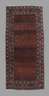 um 1900, komplett durchmustertes Mittelfeld, dreiteiliger Bordürenbereich, kleine Reparaturstelle, Trittfalte, Brauntöne reduziert, Maße 211 x 97 cm.