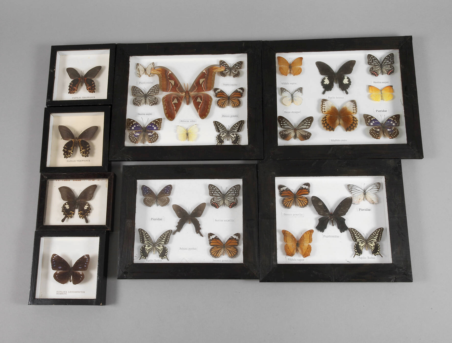 2. Hälfte 20. Jh., acht Schaukästen, alle bezeichnet, alle hinter Glas in schlichten Leisten gefasst, unterschiedliche Maße und Erhaltung, L max. 34 cm.