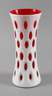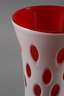 Mitte 20. Jh., signiert und bezeichnet Murano Italia, hellrotes Glas, weiß überfangen, Olivschliffdekor im Rapport, leichte Alters- und Gebrauchsspuren, H 31 cm.