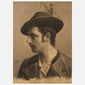 Portrait eines jungen Mannes in Tracht, Graphit, links ligierte Signatur und datiert „FN (18)96“ und rechts unten nochmals datiert „31. Jan.“, unter Passepartout und hinter Glas gerahmt, Passepartoutausschnitt ca. 55 x 40,5 cm.