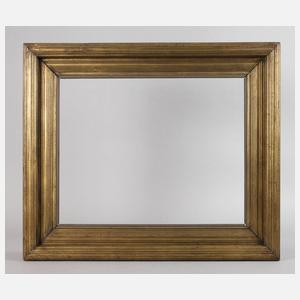 um 1810, fein geschnitzter, hoher, getreppter und gerillter Aufbau, rückseitig verstärkt, vergoldet, innen Kontrastleiste, etwas trocknungsrissig, Vergoldung partiell berieben, Innenmaße 61,5 x 48 cm.