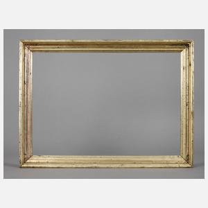 Rahmen aus ca. 4,5 cm breiter, steigend profilierter, versilberter und schelllackpatinierter Holzleiste, Gehrungen geschnitten, geringe Erhaltungsmängel, Falzmaße ca. 52 x 37,5 cm.