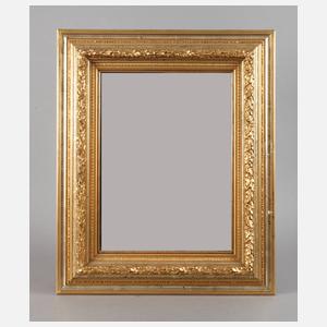 Ende 19. Jh., stark profiliert, gestuckt und blattvergoldet, verziert mit Eichenlaub, beigegeben ein Gemälde, Öl auf Karton, sommerlicher Blick auf eine Kirche im abendlichen Licht, monogrammiert LF, guter Allgemeinzustand mit geringen restaurierungsbedürftigen Stellen, Innenmaße 43 x 31 cm.