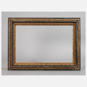 rückseitig gemarkt A. J. Heijdenrijk, 1. Hälfte 20. Jh., Holz geschnitzt, gestuckt, vergoldet und mattschwarz staffiert, mit reliefierten Ornamentleisten, Gebrauchs- und Altersspuren, Innenmaß 37 x 55 cm.